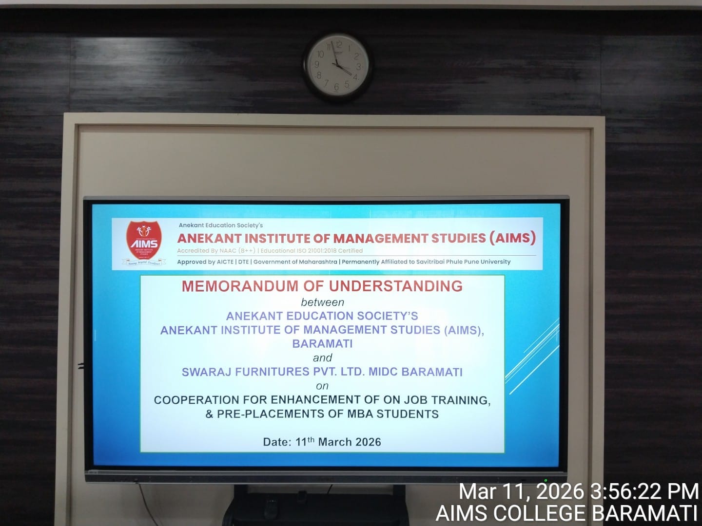 Memorandum of Understanding (MOU) between AIMS and Swaraj Furnitures Pvt. Ltd.